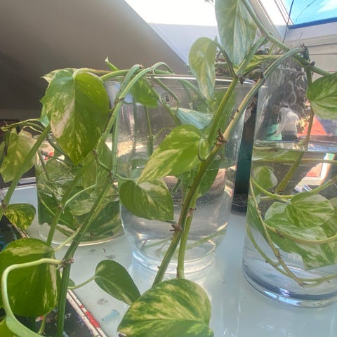 • Stiklinger har allerede fått røtter unntatt 1. Har 7 stykker.