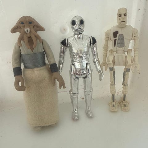 Star Wars actionfigurer i plast. Figurenes høyde er ca. 10 cm. Settet består av tre figurer i ulike farger og antrekk, med detaljerte drakter og enkelte løse våpen/tilbehør. Egnet som samleobjekter eller lekefigurer for barn og voksne som liker Star Wars-universet.