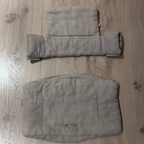 Et fint offwhite Stokke putesett til Tripp Trapp med god padding som passer både i kombinasjon med Stokkes Baby Set i plast, og rett på stolen. Kan enkelt vaskes i maskin. Noen bruksmerker.