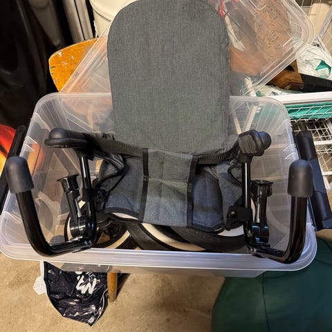 Det er enkelt å slå sammen spisestolen for oppbevaring når den ikke er i bruk, takket være håndtaket er den også lett å bære. Bena på fremsiden er utstyrt med anti-skli puter, de bakre bena har hjul for å gjøre det enklere å flytte stolen"