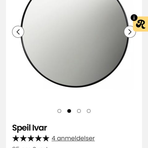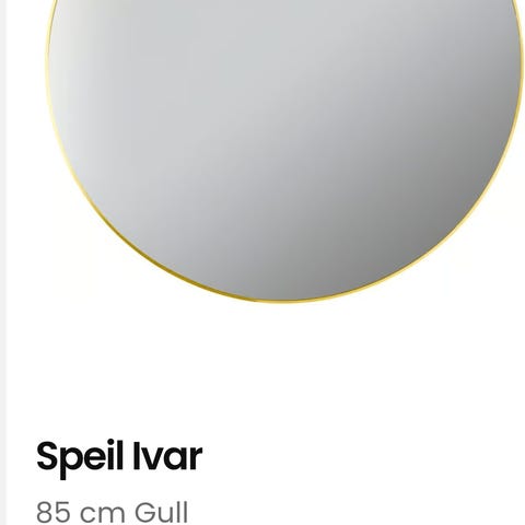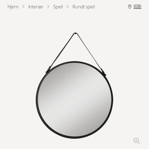 Rusta Ivar rundt speil med diameter på 85 cm i svart utførelse. Speilet har en enkel, rund form med smal svart ramme. Egner seg til bruk i for eksempel gang, stue, soverom eller bad, der et større veggspeil er ønsket for speilflate og romfølelse.