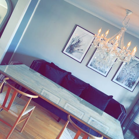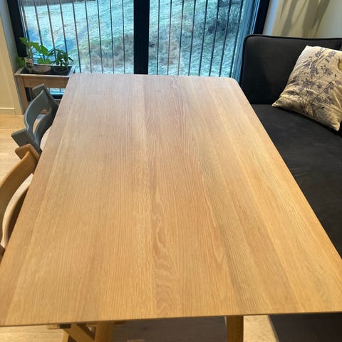 Fint brukt spisebord med ileggsplate. Noen små merker.