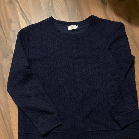 Noa Noa genser for dame , genseren er mer liten medium. Genseren er i ribbestrikket med blandings materialet, usikker hva det er. . Den har lange ermer og høy hals, med lett puff på skuldrene for en markert skulderfasong. Passer til hverdagsbruk og kan kombineres med både bukser og skjørt.