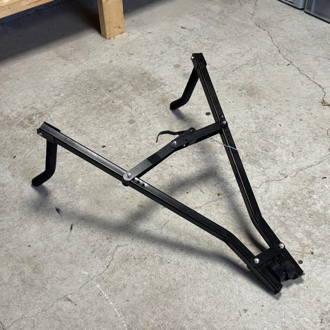 Sykkelstativ til 2 sykler til å feste på hengerfeste. Skilt meg lys til å henge på utsiden av syklene for sikker transport. Må hentes på Kaldnes på Nøtterøy.