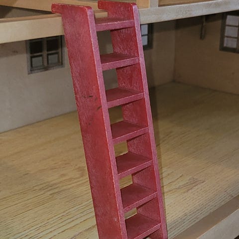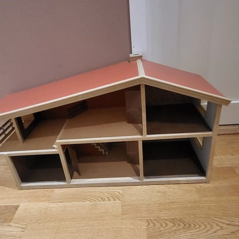 Vintage hus i god stand, med noen alderstegn og bruksmerker; se bilder. Inneholder flere av sine originale dekor som gjøkur og veggbilder (disse henger fast i veggen). Halve taket kan tas av og på. Følger med en rød stige, det var husets eneste løse tilbehør i originalpakken.