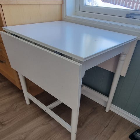 Bord med utvidere til salgs. Passer perfekt for en kaffetrakter og litt annet stash med en kjekk skuff. Et par småskader som medfølger fra tidligere eier sannsynligvis, men ellers i tipp topp stand!