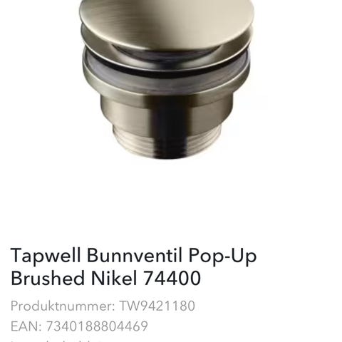 Universal pop-up bunnventil til badekar selges til halv pris da jeg ikke har bruk for denne.