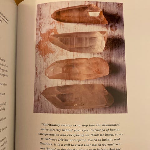 Boken tar også for seg grunnleggende informasjon om bruk av krystaller, inkludert temaer som chakraer, auraer og krystallrutenett.