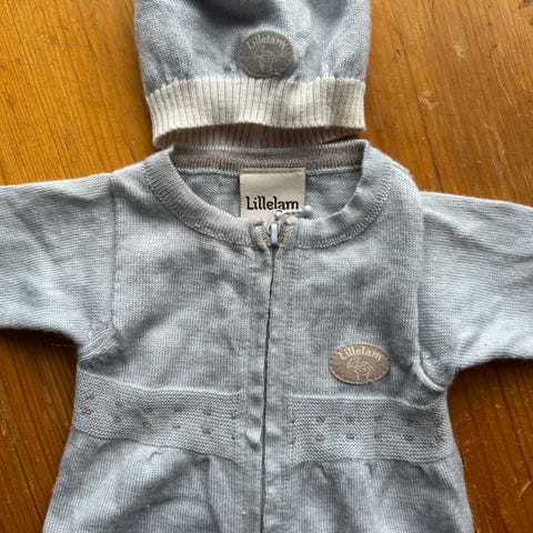 Lillelam ulldress og lue baby str. 50 blå unisex
