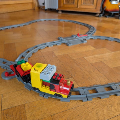 Duplo togbane med batteri drevet tog.