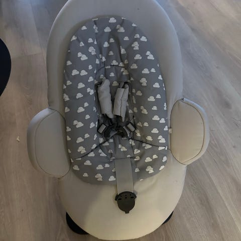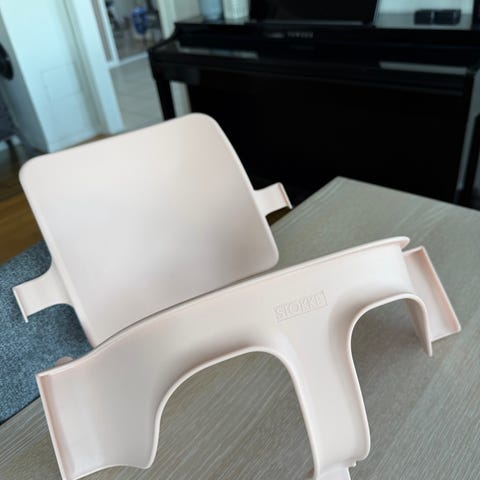 Stokke barnesete i beige farge. Setet har integrert sele med skulder- og skrittstropp. Plastbase med festepunkter for montering på kompatibelt understell. Egnet som barnesete for mindre barn, der barnet sitter fastspent i setet (maks 9 kg). Nøytral farge som passer til ulike interiører og barnevogn- eller stolmodeller som er kompatible med denne typen Stokke-sete.