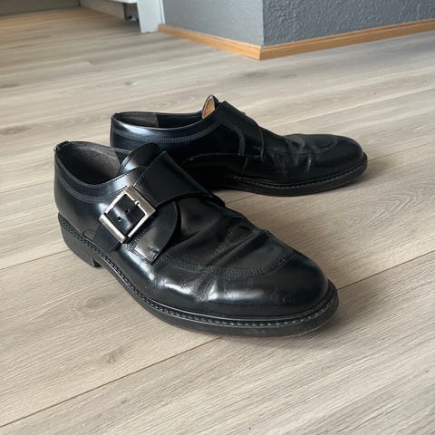 Pensko / munkesko i veldig god kvalitet. Fra Tyskland. Sier str 48, men jeg bruker vanligvis 47 så vil si de passer godt der også. Innersålen måler ca 31cm.