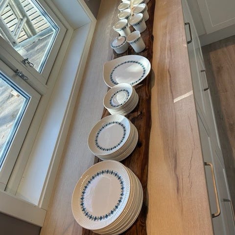 13 tallerkner, 12 kaffeskåler 7 kopper