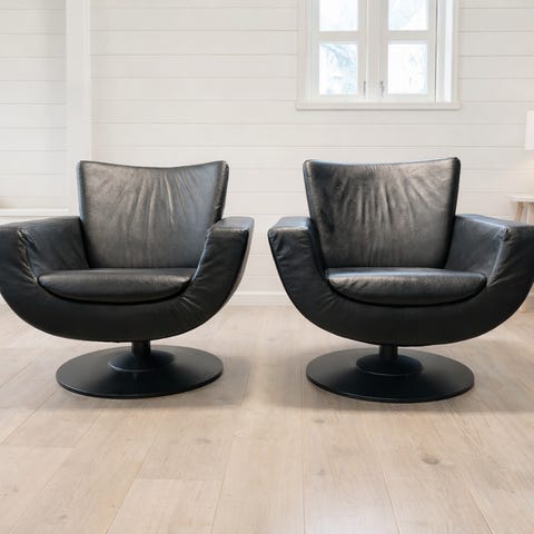 Oppgitt pris er for 2 stk Brunstad Sting lenestoler i nydelig brun farge (BLOQ: Cognac). Ben i sort børstet stål.
