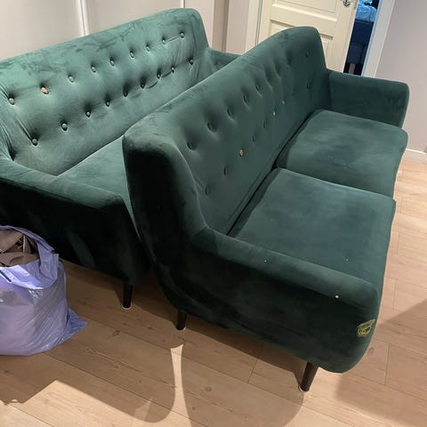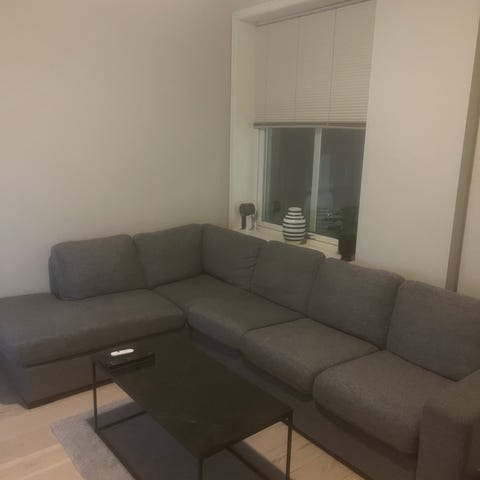 Mørk grå sofa gis bort. Lengde: 230 cm, dybde: 90 cm, Sjeselong måler: 140 cm. God å sitte i. Gis bort mot henting. OBS! Står i Trondheimsveien - Oslo