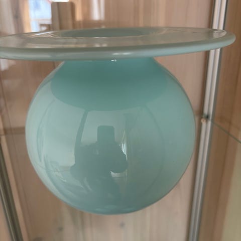 Magnor Glassverk lyslykt i blått glass. Lyslykten er laget i gjennomfarget glass med tykk bunn og rund form. Egnet til telys eller små kubbelys, og kan også brukes som liten borddekorasjon eller pyntegjenstand i interiøret.