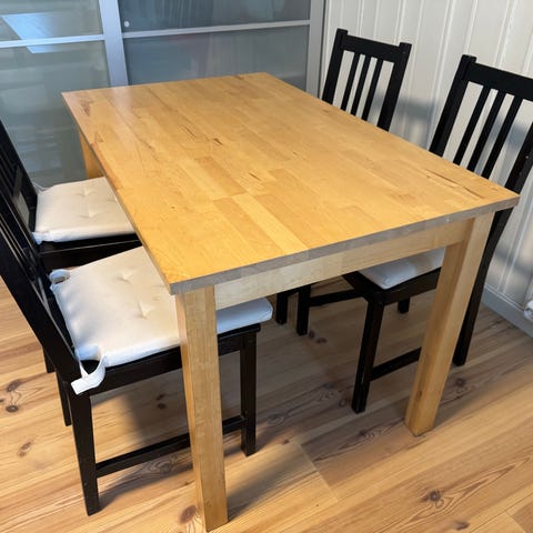 Selger Sandsberg bord fra IKEA + 4 stoler.