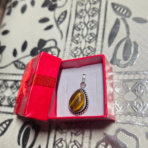 Den er ekte sølv med opal stien men ikke naturlig. Den lyser 3 farge veldig fint og farge fast den lager laboratoriet så den kan dusje null problem