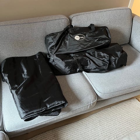 Praktisk reiseseng. Pent brukt av ett barn. Kan hentes i Oslo.