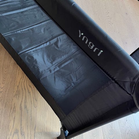 Jysk reiseseng til baby i svart tekstil med lyse sidepaneler. Sengen er sammenleggbar og egnet til bruk som midlertidig seng for spedbarn og små barn, for eksempel på reise eller som ekstra seng. Det følger med en tynn madrass med quiltet trekk. Sengen har nettingfelt i sidene som gir innsyn og lufting. Det følger med en ordentlig Wonderland Dreamzone madrass med avtagbart trekk. Denne kostet alene 1000 kroner.