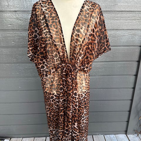 Kort strandkjole/ kaftan fra Salta Bad. Ubrukt. Str.2 som tilsvarer S/38. Knyting i livet. Søtt småblomstret stoff.