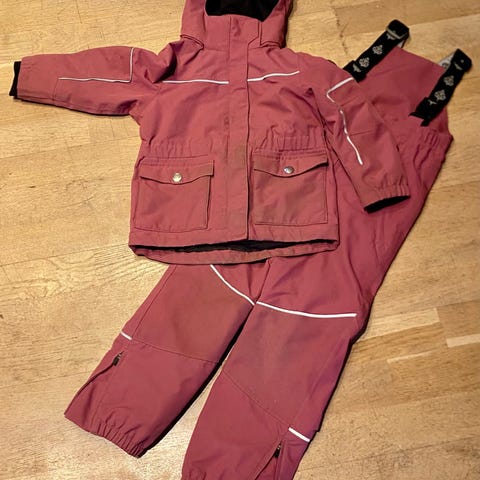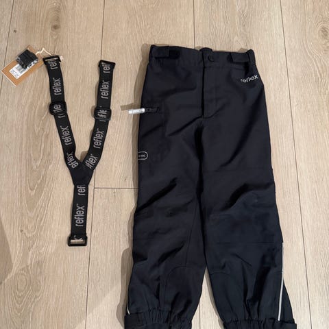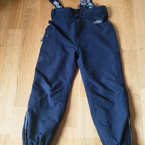Pent brukt skallsett fra Reflex i designet "Lyngen", str 116. Vind- og vanntett (jakke 15.000 mm vannsøyle, bukse 18.000 mm vannsøyle).