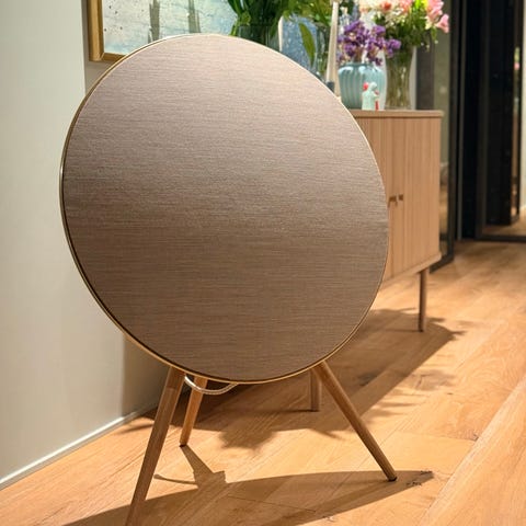 Bang & Olufsen Beoplay A9 Mk2 høyttaler hvit med trebent stativ