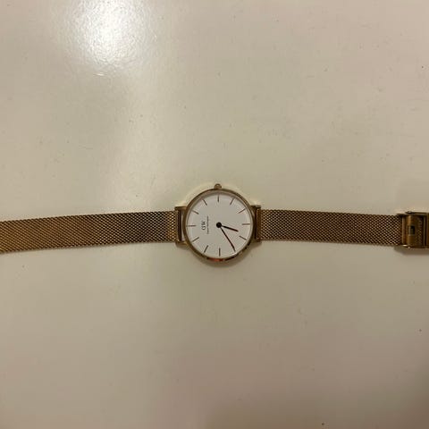 Selger en svært pent brukt Daniel Wellington klokke i gull med mesh-lenke.