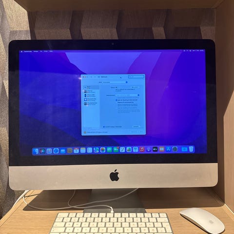 Apple iMac stasjonær PC med 21,5-tommers skjerm i sølvfarge selges, nesten helt ubrukt. Jeg har rett og slett ikke plass til den, og den trenger sårt et nytt hjem. Det er en 2017-modell (som vist på bildet), men den ble kjøpt ny på Elkjøp i 2021. Macen er brukt ved ca. 5 anledninger, og da kun til skriving i Word. Det er aldri blitt kjørt noen «tunge» programmer.