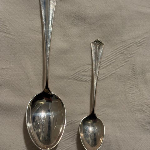 Skjeene er i 830S sølv, stemplet og originale.