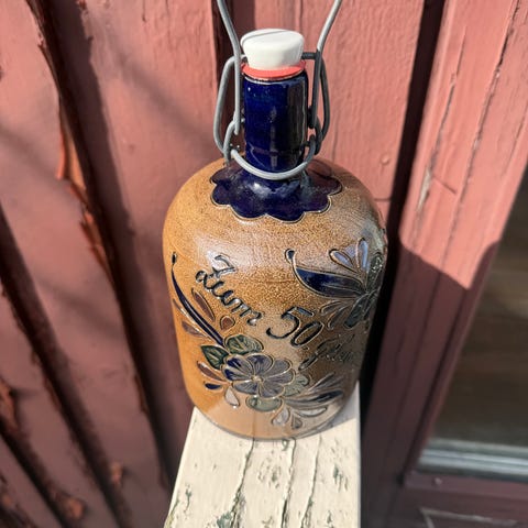 Bols keramiske flasker i brun farge. Flaskene er laget i keramikk/steingods og har opprinnelig vært brukt som brennevins- eller likørflasker. Egner seg som dekor, samlerobjekter eller rekvisitter. Flere størrelser, med original etikett på én av flaskene.