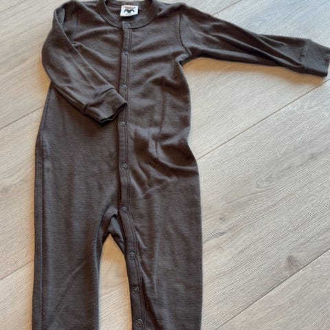 Tynn ulldress (ull og bambus) i str 80 fra Hust & Clair. Dressen har knapper og mulighet for å brettes ned på ben. Pent brukt.