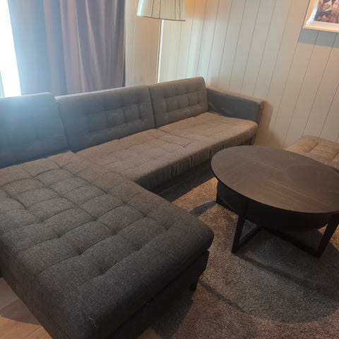 Selger en fin tresetersIkea Vimle sovesofa med sjeselong, i trekket Gunnared beige. Brukt mest som sofa hos oss i tre år, sengedelen er lite brukt.