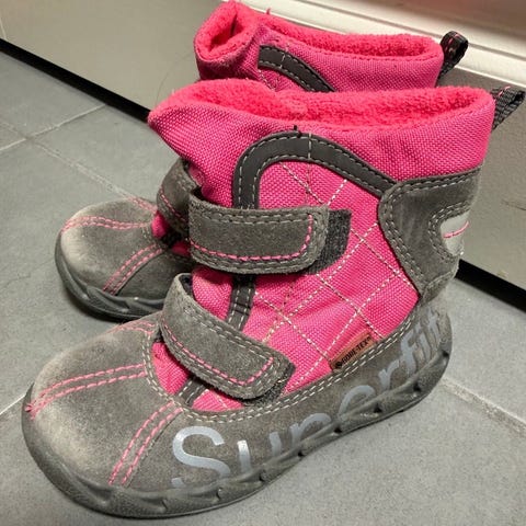 Superfit vintersko for barn i størrelse 26, unisex. Skoene er svarte med grå detaljer og har to borrelåsstropper for enkel justering og av- og påtaking. Overdelen er i tekstil og syntetisk materiale, med polstret skaft og fôr for ekstra komfort. Sålen er grovmønstret gummi som gir godt grep på underlaget. Egner seg til bruk i kaldt vær og i hverdagen gjennom høst- og vintersesongen.