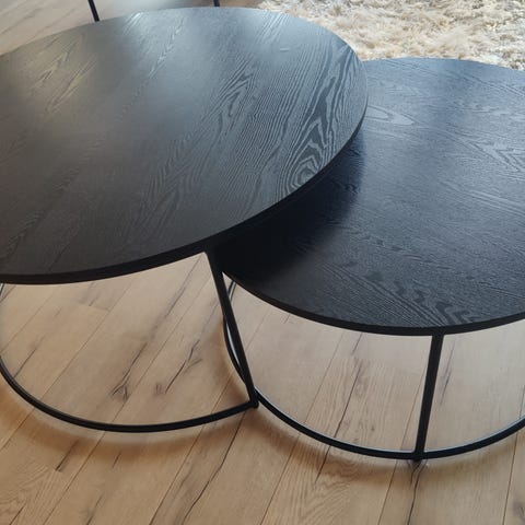 Muran salongbord fra Bohus i askefiner. Muran består av to bord der det ene sklir under det andre. Se bilder.