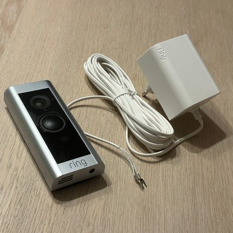 Ring Video Doorbell Pro 2 (5AT2S2) for kablet installasjon, med strømtilkobling og både grå og svart frontplate.