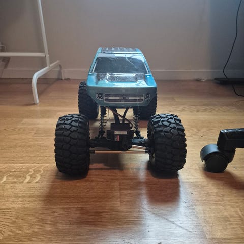 Led baren har på og av bryter, den mangler også en bolt på siden så den snur seg opp og ned. Festet til Servoen er brukket som man kan se på bilde 6. den har også oppgradert akslingen forran. Det følger med 2 sett extra med dekk og det man kan se på det siste bildet