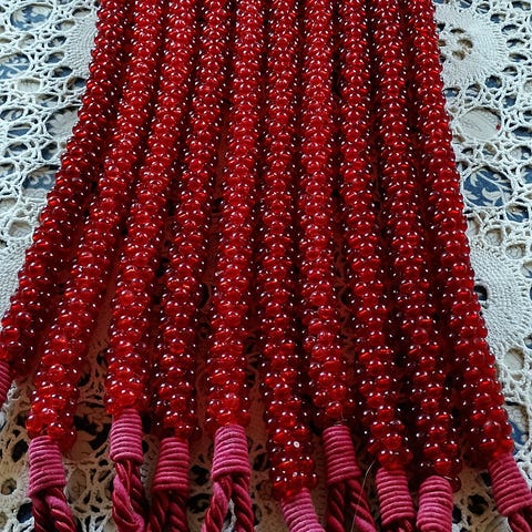6 Stofftrekk til spisepinnene med tradisjonelle mønstre.