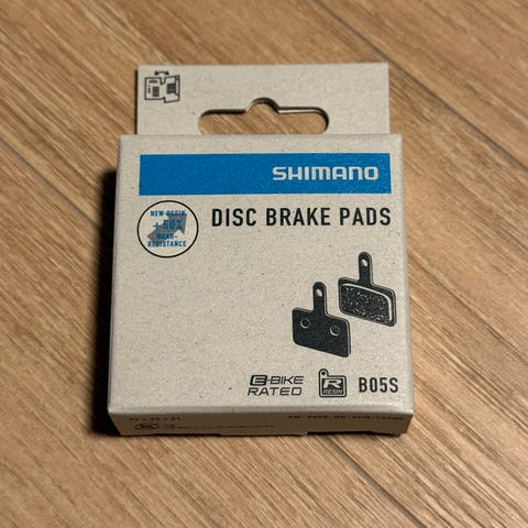 Shimano L04C skivebremseklosser og Tacx hurtigkobling sykkeltilbehør.