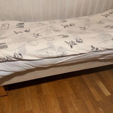 Brukt seng, uten overmadrass, gis bort til første som kan hente. Sengen er brukt daglig i røyk-og dyrefritt hjem og gis nå bort pga ny seng.
