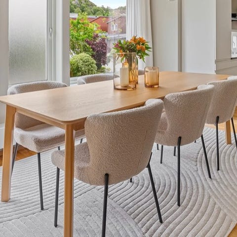 Stolene er gode å sitte i, og vi har vært veldig fornøyde med dem. Stoffet er også lett å vaske med klut el.