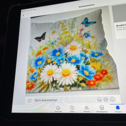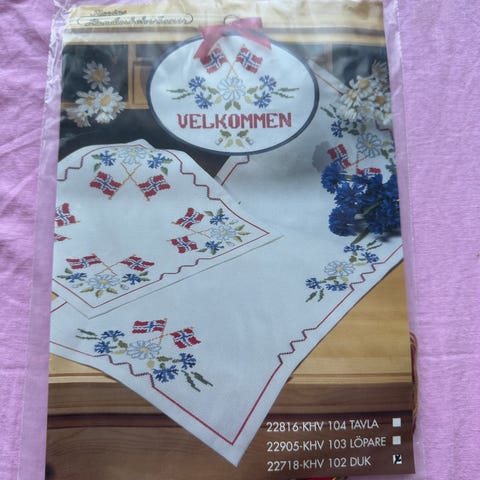 Ekwalls broderipakke med pute med blomstermotiv i grønnfarger. Pakken inneholder stoff med påtrykt mønster for brodering av en kvadratisk pute. Motivet består av blomster og ornamenter i ulike grønntoner på lys bakgrunn. Egnet for tradisjonelt broderi til interiør og pynt i hjemmet.