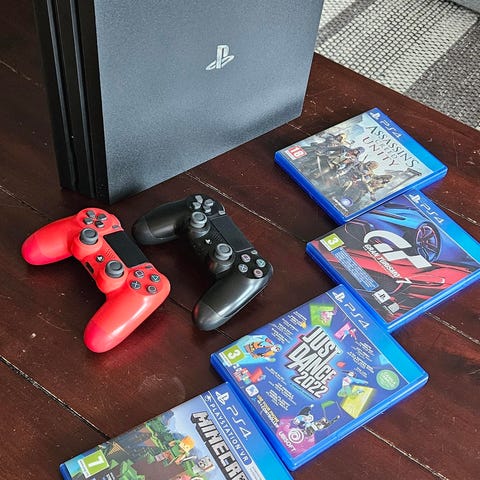 Playstation 4 slim selges grunnet den ikke blir brukt lenger. Følger med en del spill.