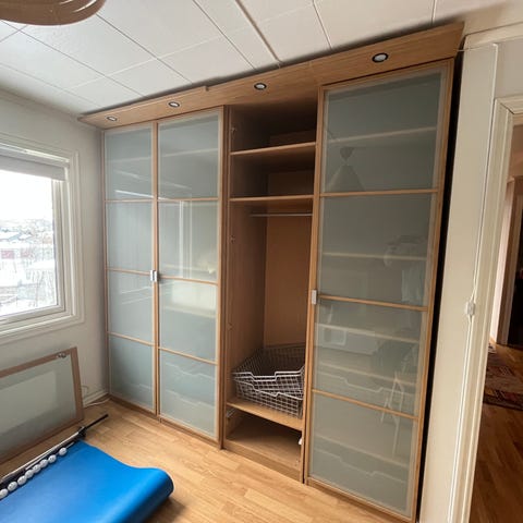To Billi-bokhyller, Kallax-hylle med ståskuffer, lite tørkestativ, stort speil, rullegardin, gardinstang med oppheng gies bort grunnet flytting. Fra Ikea. Hentes snarest.