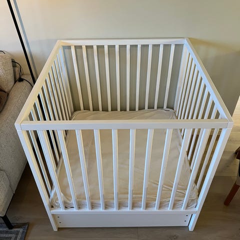 Sagababy lekegrind i hvit utførelse. Lekegrinden har klassisk sprossekant på alle sider og rektangulær form. Den leveres med bunnplate og madrass som vist på bildene. Egner seg som trygt leke- og hvileområde for små barn innendørs. Passer i stue, barnerom eller andre oppholdsrom der man ønsker et avgrenset område for barnet.
