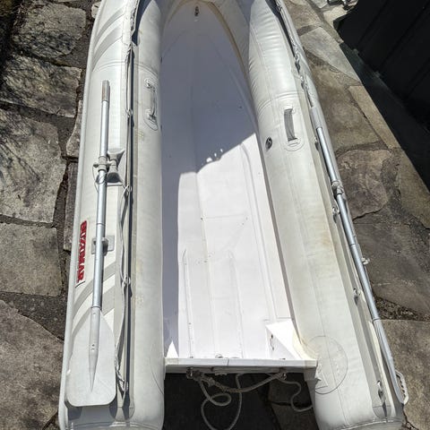 Eldre Kulig glassfiberbåt. Ukjent årsmodell. L: 4,30m. B: 1.40m. 2.000,-kr eller bud. Må hentes
