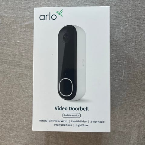 Arlo Video Doorbell trådløs ringeklokke med kamera. Enheten har videofunksjon for overvåking av inngangspartiet og støtte for toveis lyd slik at du kan se og høre besøkende. Dørklokken er batteridrevet og kan kobles til trådløst nettverk. Egnet for bruk ved inngangsdører og andre adkomstpunkter der man ønsker visuell og akustisk varsling når noen ringer på.