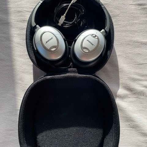 Bose QV 25 er klassiske støydempende hodetelefoner med meget god lydkvalitet. Disse er i godt brukt, med litt slitasje rundt øreputene men disse kan evt byttes ut.