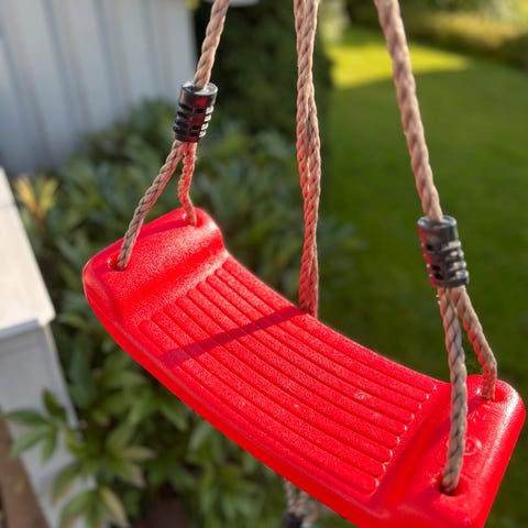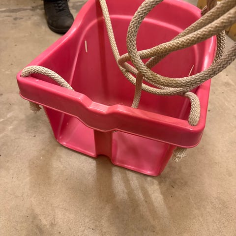 Gjør deg klar for vår og sommer! Vi selger denne geniale husken / ronsen for småbarn. Fin og hel, med hele tau og gode metallfester.
