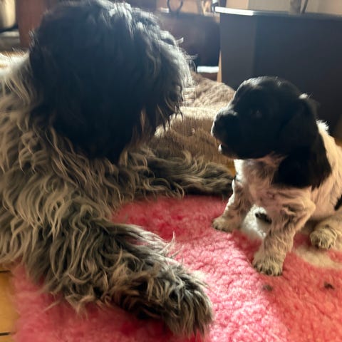 Verdens hyggeligste blandingshund (Portugisisk vannhund/Flat coated retriver) søker deltidshjem. I utgangspunktet er vi på jakt etter en 50/50 løsning hos en dyreglad familie eller person. Han er oppvokst med små barn og katter og er evig tålmodig. Ta kontakt hvis dette kan være av interesse.
